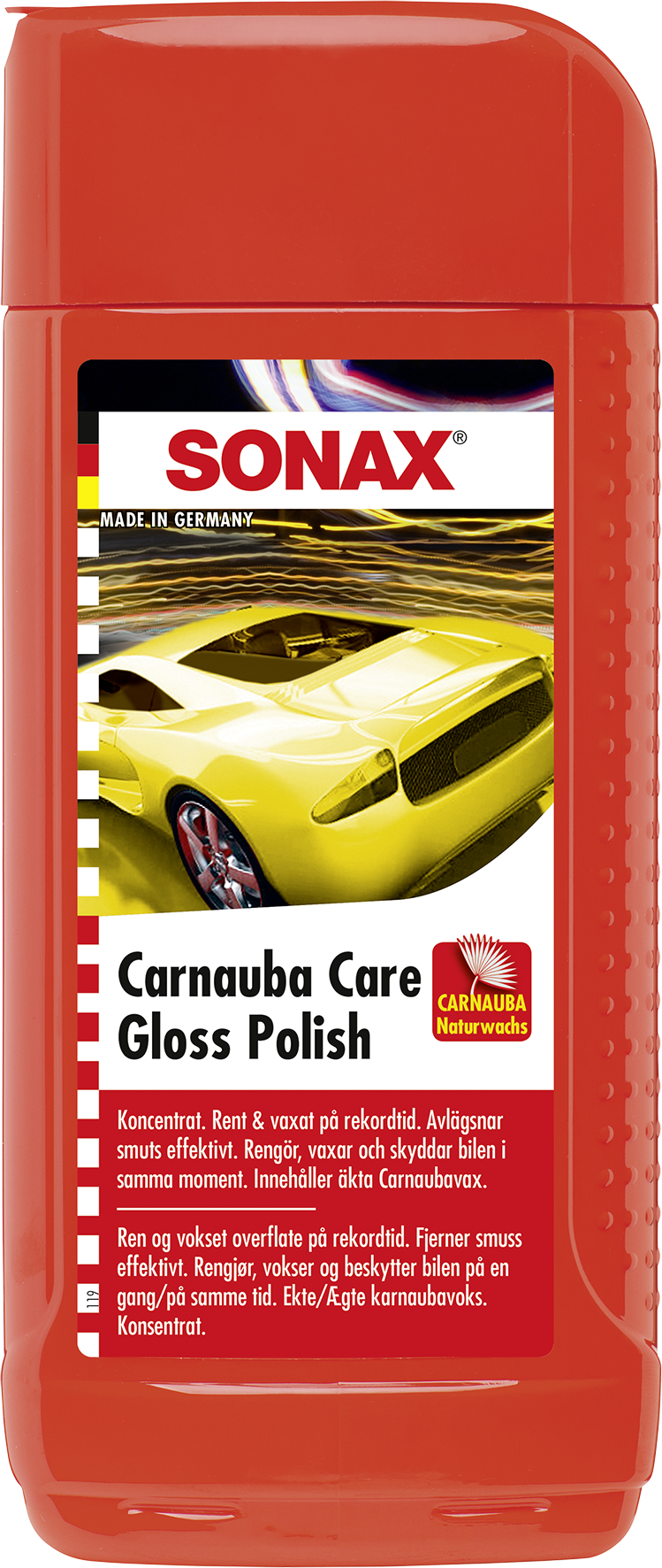 Sonax puhdistava carnaubavaha joka poistaa hetkessä hapettumat ja pienet naarmut, antaen upean kiillon. Uniikki koostumus vähentää työstöaikaa ja vaivaa huomattavasti. Vaha voidaan levittää myös koneellisesti.