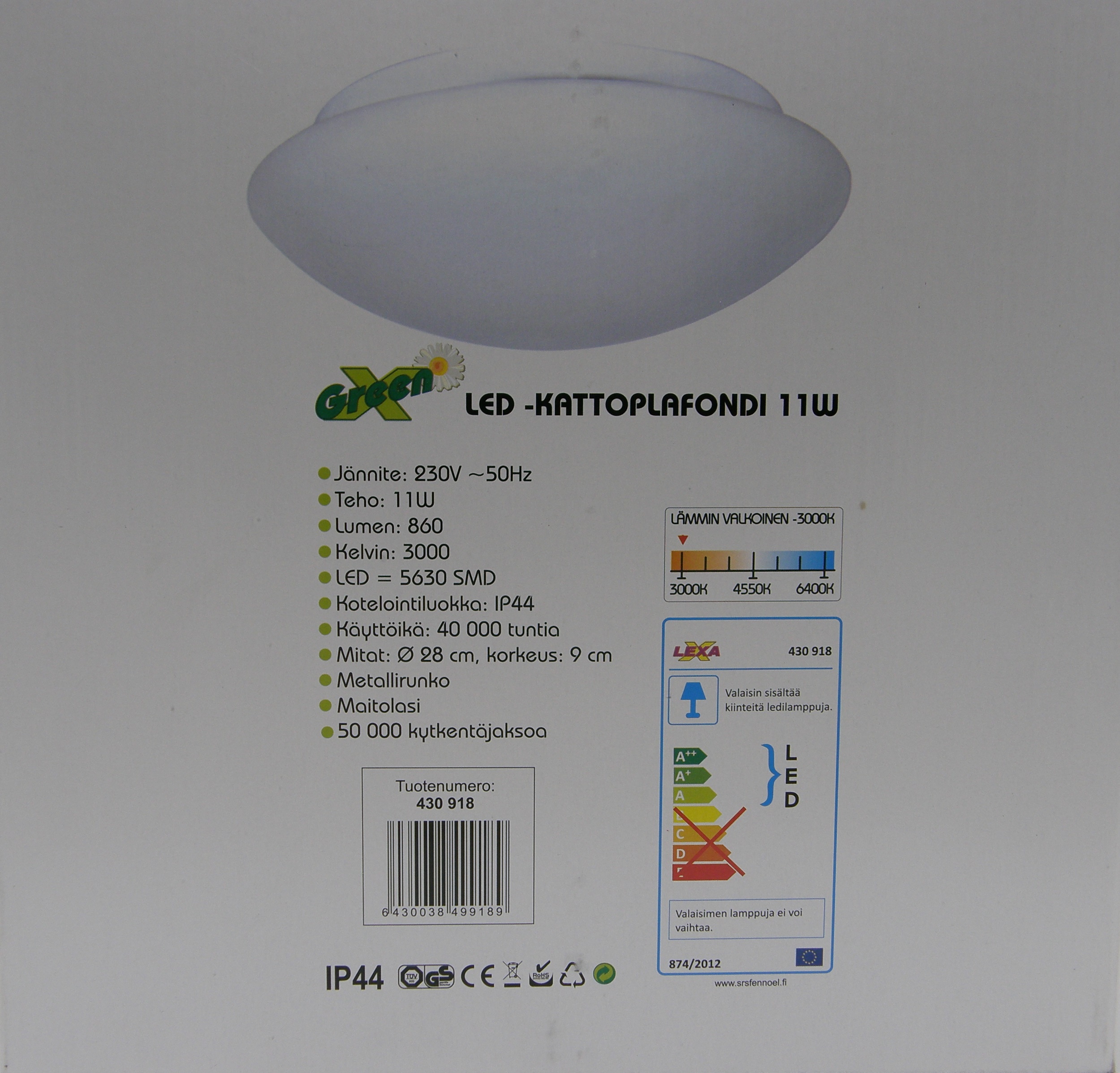 Kattovalaisin | pyöreä kattoplafondi LED | 220 V | 11 W halk. 280 mm , korkeus 80 mm tukeva metallirunko kotelointiluokka IP44 maitolasi kupu paino 980 g valovoima 860 lm värilämpötila 3000 k... Lue lisää