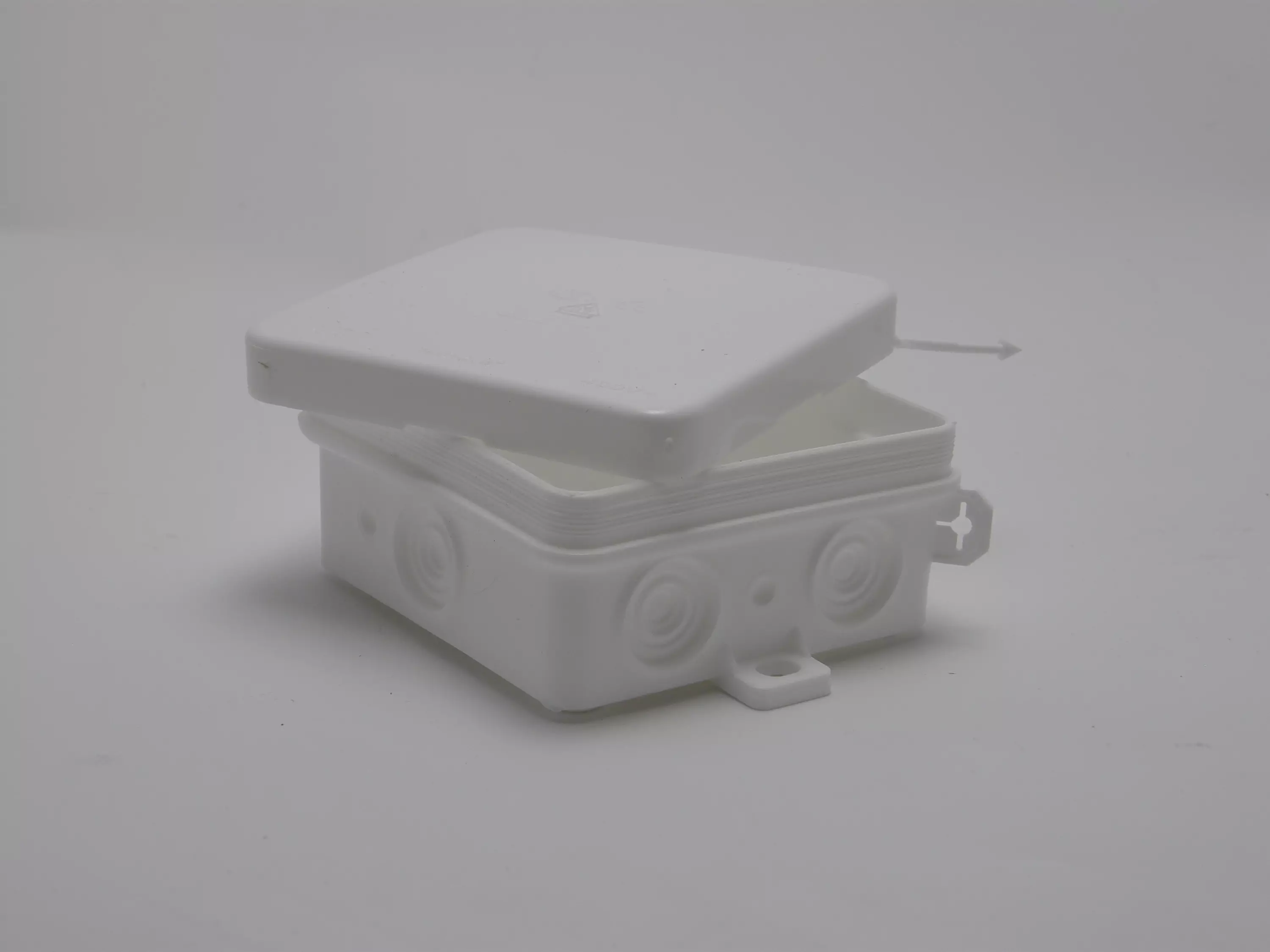 JSL FE-7 Pinta-asennus kytkentärasia Jakorasia 6:lla puhkaistavalla johtoläpiviennillä. Koko: 75 x 75 x 37mm Kiinnityskorvakkeilla 10 kpl muovipaketissa