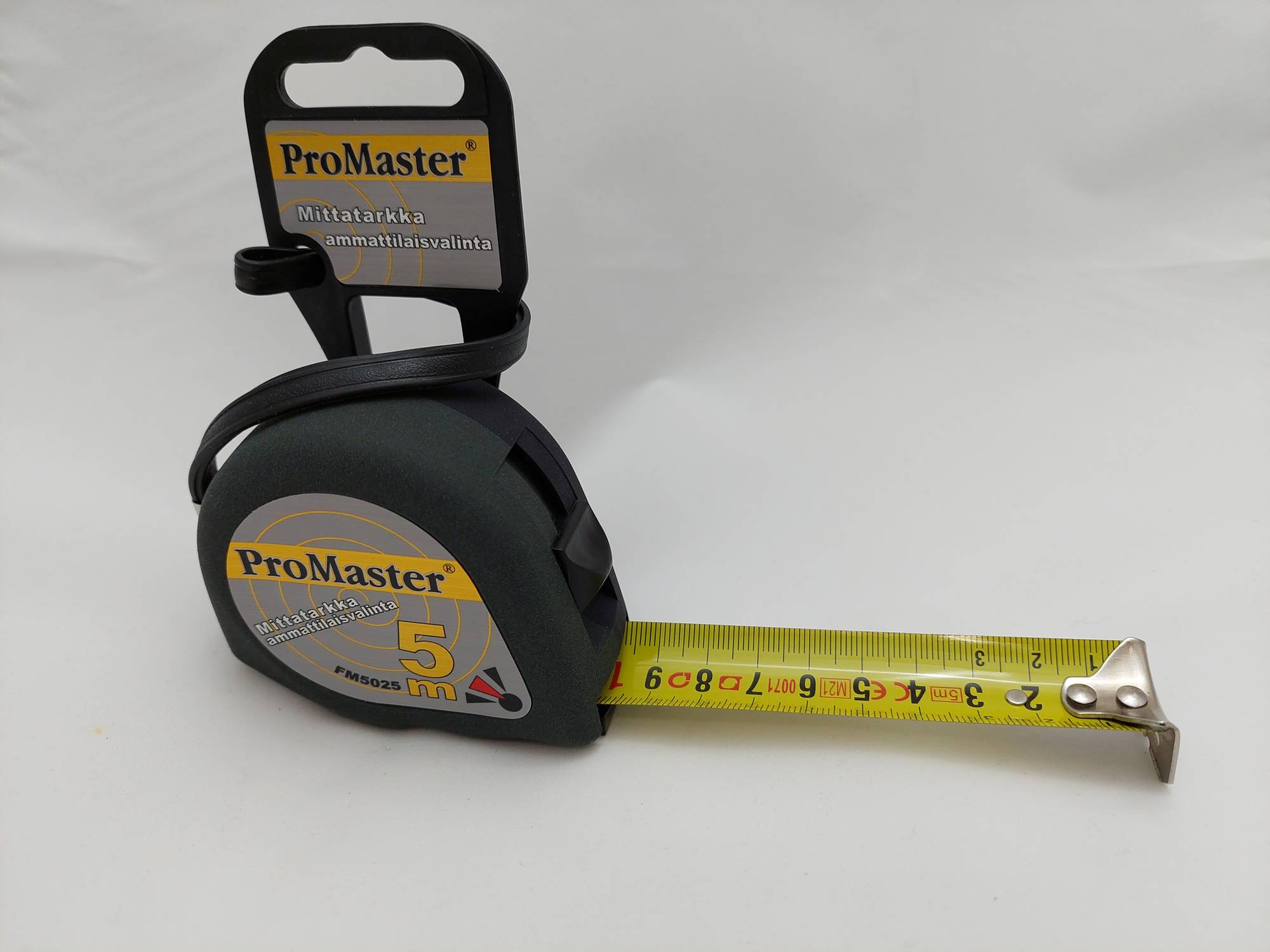 MITAT AMMATTIKÄYTTÖÖN! PROMASTER -mittanauhan pituus/leveys: 3 m/19 mm, 5 m, 8 m ja 10 m/25 mm -metrinen mitta-asteikko -keltainen, nylonpulveripinnoitettu mittanauha 8m ja 10m mitoissa ja... Lue lisää