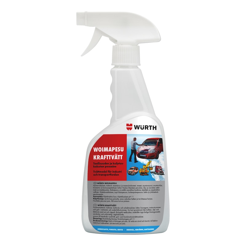 Wurth Woimapesu on käyttövalmis emäksinen pesuaine teollisuuteen ja kuljetuskalustolle. Poistaa tehokkaasti asfalttitahrat, rasvan ja maantiesuolan.